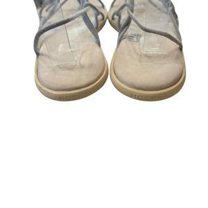 HOGAN Women's Gray, Suede Leather Thongs Sandals with a Netting Design.