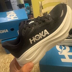 Sleek Hoka sneakers in black and white. Perfect for active lifestyles.To me these are the best sneakers on market right now!! They would cost you $192 shipped to your door if you purchased on their site right now!! Save a little here !!!