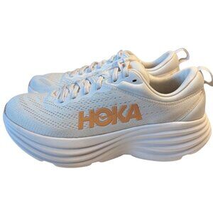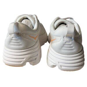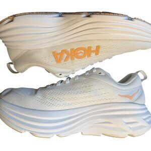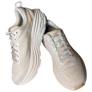 running shoes athletic sneakers performance trainers Hoka Bondi 8 white apricot cushioned shoes marathon comfort footwear neutral support everyday walking gym cross-training lightweight plush heel stability fitness activewear