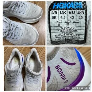 HOKA ONE ONE Bondi 9 Running Shoes 8 White Max Cushion Road Trainers No Insoles