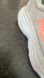 HOKA ONE ONE Bondi Running Shoes Size 6. The shoes are made of a breathable mesh upper with a white and light blue midsole and a black outsole. The shoes have a few minor scuffs and marks on the upper and outsole, but are otherwise in good condition. The shoes have a comfortable fit and are designed for neutral runners. The shoes are lightweight and provide good cushioning and support. The shoes are in good condition with noticeable holes inside ankles, very good clean and ready to be worn.