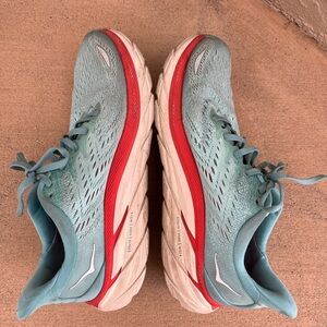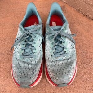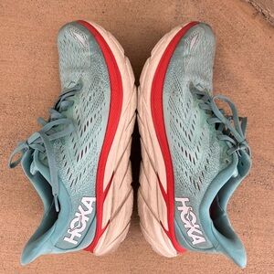 HOKA ONE ONE CLIFTON 8 Aqua Blue Orange Women’s 9.5 D Sneaker Running Shoe