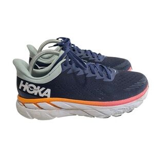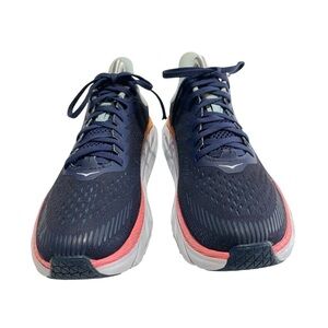 Elevate your running game with these navy blue Hoka One Clifton 7 sneakers in women's size 9. The breathable mesh upper material and M shoe width provide a comfortable fit for any athletic activity. The style code 1110509/BIBH and model name Hoka One One Clifton 7 add a touch of luxury to your sportswear. These sneakers are perfect for women who want to take their running experience to the next level.