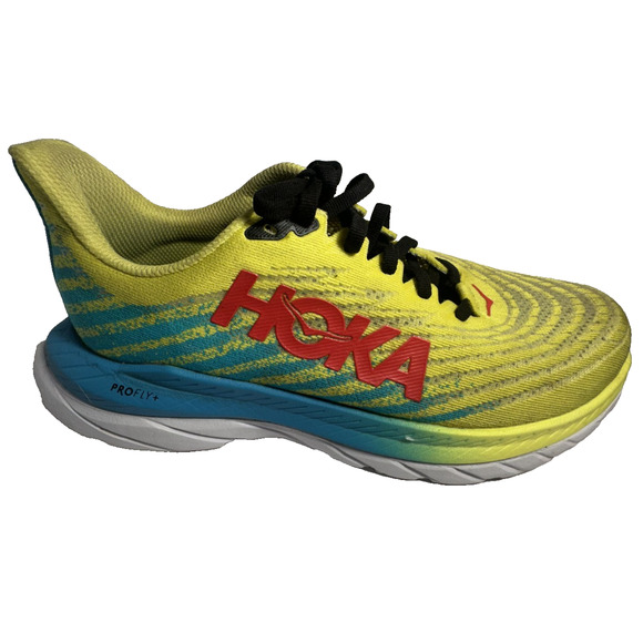 The HOKA ONE ONE Rocket X Women's Size 7B Running Shoes in yellow and blue feature a low top design with a breathable mesh upper and a foam insole for comfort. These athletic sneakers have a rubber outsole for traction and a lace-up closure for a secure fit. Made by the brand Hoka One One, these shoes are designed for women and offer a stylish and functional option for running or everyday wear. Imported from Vietnam, these shoes combine performance and style for active individuals looking for reliable footwear.