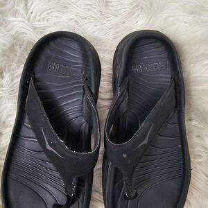 HOKA ONE UNISEX "BLACK/DARK GULL GRAY" ORA RECOVERY FLIP SANDALS SIZE 7