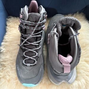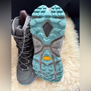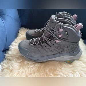 Explore the outdoors with HOKA women's hiking shoes in a sleek gray design. Perfect for comfort and durability on any trail.