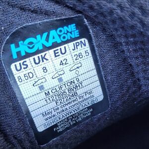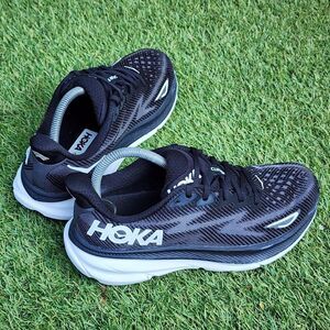 PRE-OWNED No Box ‐----------------------------------------- HOKA ONE ONE CLIFTON 9 Color - BLACK Mens Athletic Shoes SIZE 8.5D ‐----------------------------------------- USED IN GOOD CONDITION See photos for extra details. ‐----------------------------------------- Check Out My Closet For More Athletic Shoes Just A Reseller Don't Know About The Miles On the Shoes ‐----------------------------------------- Ship: -monday -Wednesday -And friday before 1pm Est