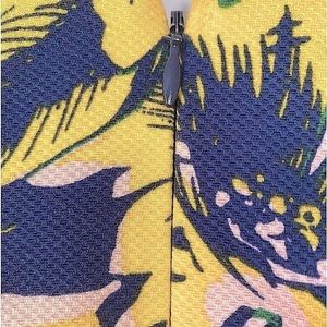 J. Crew Piqué Tailored Dress Double V Neck Navy Floral Yellow Pink Size 6 EUC