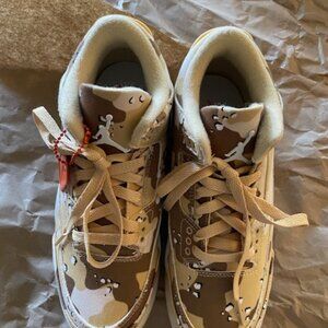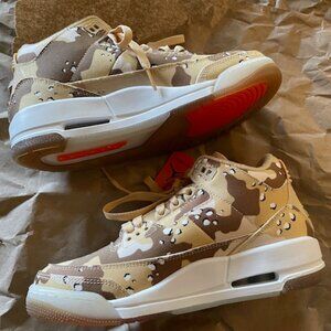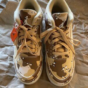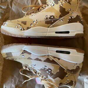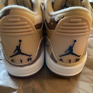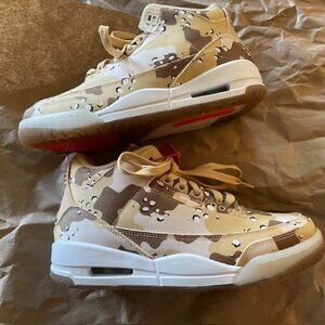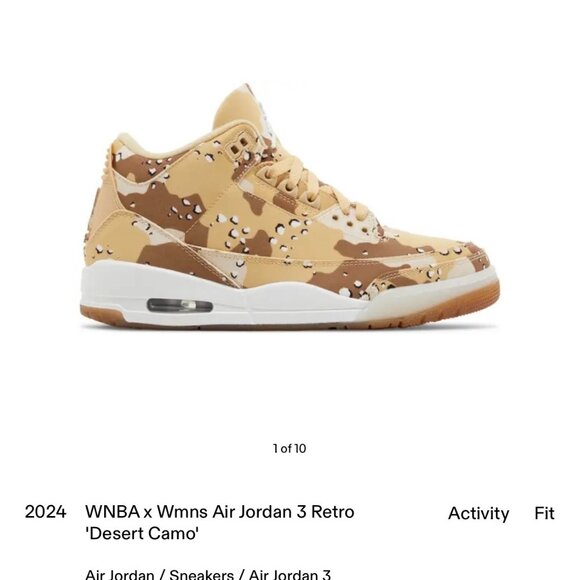 The Jordan 3 Retro WNBA Desert Camo (Women's) removes the signature elephant print and adds a colorway inspired by desert camouflage.