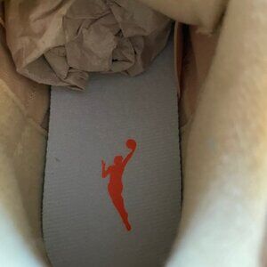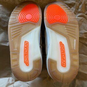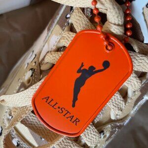 The camouflage pattern covers the entire upper and features splotches of Dark Driftwood, Sail, Hemp, and Velvet Brown. Satin and synthetic leather make up the upper, giving the WNBA Desert Camo (Women's) Jordan 3 Retro a slightly shiny finish without sacrificing durability. Like the OG sneaker from 1988, this version boasts visible air units in the heel that work with the foam cushioning to provide a responsive, supportive feel. Another notable feature is the soft textile lining the padded collar. It adds comfort and comes in a light-hemp hue.