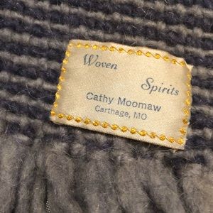 HOLD FOR SHEREE!! NOS. In my opinion words don’t do this piece justice. Original tag with Cherokee artist signature is still attached and has one sterling bead on the fringe signifying a tear drop in honor of those who died on the Trail of Tears. She is a third generation skilled weaver. The pattern on the piece is an intricate gray and grayish blue. The fringe is 10” long. Back of tag has hand written name of the piece “Blue Iris”. Price has been scribbled out - I received it this way. 6 feet across the top