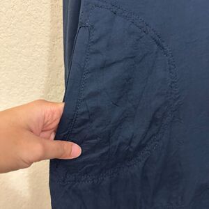HOLDING HORSES ANTHROPOLOGIE Tunic Shirt Navy Blue Roll Tab Sleeve