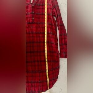 Chic red plaid shirt with button-down front. 3/4 length sleeves that can roll up and button close. Ideal for casual wear. Very nice preloved condition.