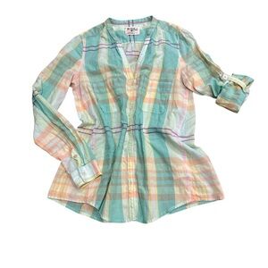 HOLDING HORSES Size 2 Multicolor Plaid Button Down Shirt V Neck Long Sleeve
