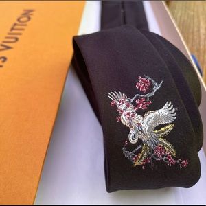 🎁HOLIDAY 25’🎁🆕💯RARE LOUIS VUITTON JOURNEY x CAMBODIA IBIS BIRD MOTIF 7-FOLD TIE🔥