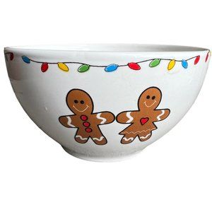 HOLIDAY BOWL Stoneware Gingerbread House People Christmas Lights Snowflakes Xmas