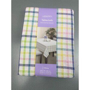 HOLIDAY HOME Spring Easter Cotton Yellow Pink Plaid Tablecloth OBLONG 60''X8"