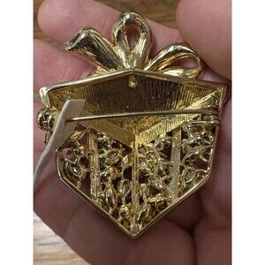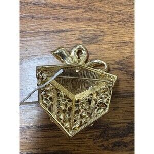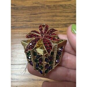 HOLIDAY LANE Gold-Tone Multicolor Mixed Stone Present Pin. Condition is Pre-owned.