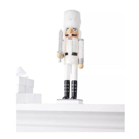 Faux-fur details add stylish punctuation to Holiday Lane's Pastel Prism nutcracker, a fresh look covered in sequins and glitter.