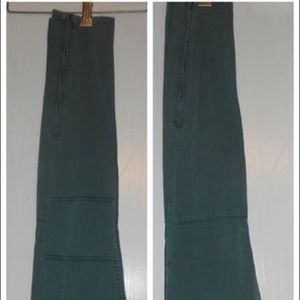 Great pair of paled pine green jeans. // Thin fabric, slimming, nice fit top to bottom. // Seam styling detail.// Excellent condition.
