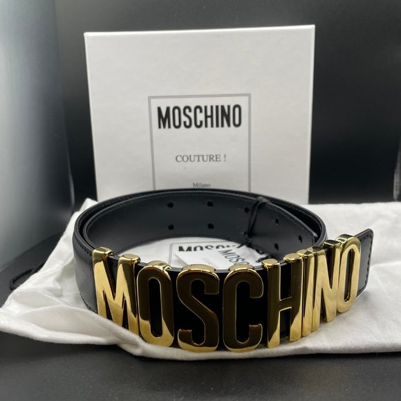 HOLIDAY SALE! NEW!!! Moschino Black Logo Gold Belt - 38