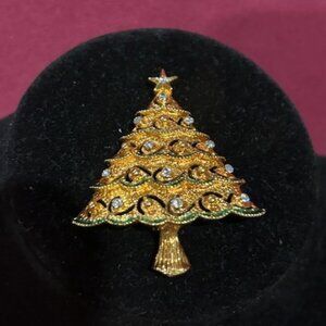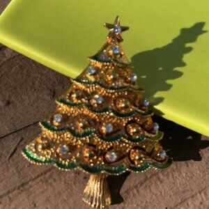 HOLIDAY🎄🎄EISENBERG ICE Sparkly Gold Rhinestone Christmas Tree BROOCH