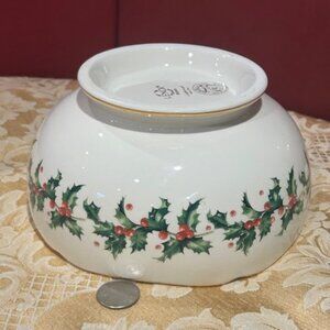 HOLIDAY🎄🎄LENOX Teleflora Christmas Holly Gold Rim BOWL