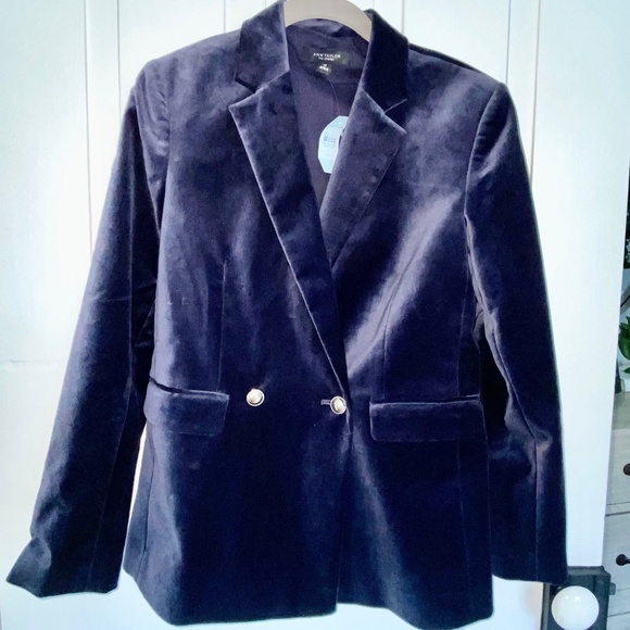 ANN TAYLOR Navy Velvet Tailored Crosby Blazer