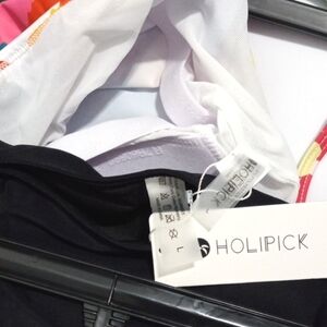 HOLIPICK MULTI COLORED TANKINI BLACK MID RISE BOTTOMS SIZE LARGE NWT