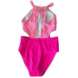 HOLIPICK high neck one piece cutout waist two tone hot pink swimsuit size médium
