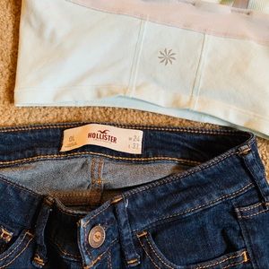 Low rise waist hollister skinny jeans 👖 dark blue w24 L33 In good condition See pictures for details!! 👌