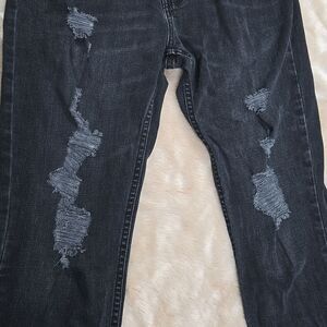 Stylish and comfortable black distressed jeans perfect for any casual outing. These jeans offer a trendy look with a touch of edge.