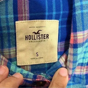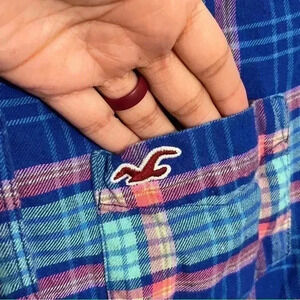 HOLLISTER Blue and Pink Plaid Flannel Top | size small