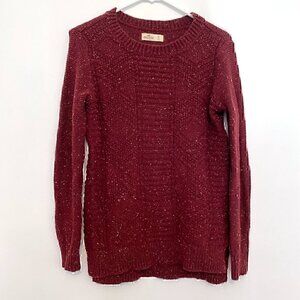 HOLLISTER Burgundy Maroon Red Speckled Flecked Chunky Wool Blend Tunic Sweater S