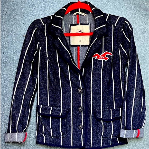 GOING BACK TO CALI.. SWEET BLUE PINSTRIPE Blazer with [red] Hollister Patch and red on the sleeve cuffs for an exciting POP ❤️🔥