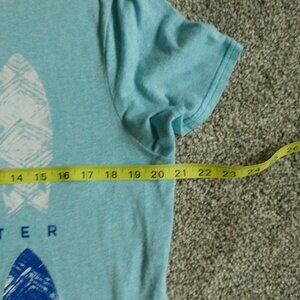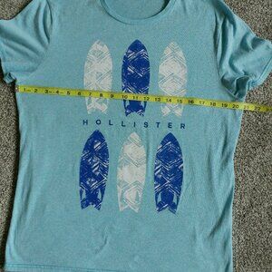 HOLLISTER California Men's Graphic T-Shirt Short Sleeve Light Blue Surf Boards Size Large Good Pre-Owned condition ( see 3rd picture of the small stain on the front near hem, the scissors are pointing to it) Pet free Smoke free home