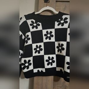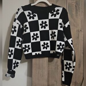HOLLISTER Check and Floral PatternSweater in Black White. Size XXS NWT