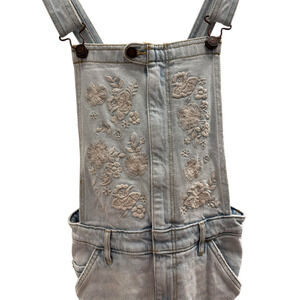 HOLLISTER Embroidered Floral Skinny Distress Denim Overalls All in One Boho Sz S