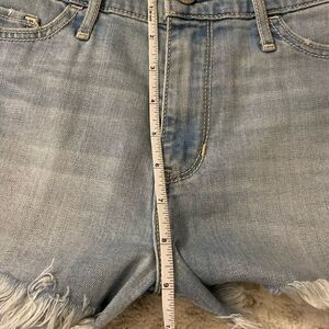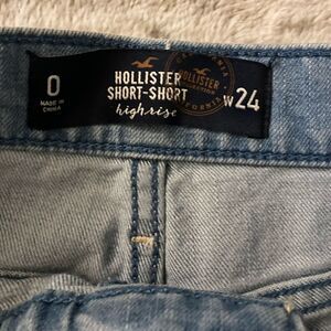 : : selling very cool cute on trend preloved preowned HOLLISTER High Rise Cut Off Denim Shorts with Lace Trim on Sides in good to average condition : :