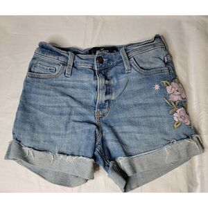 HOLLISTER High-Rise Midi Shorts Cuffed Jean Shorts w/Embroidery Floral Sz 0/24