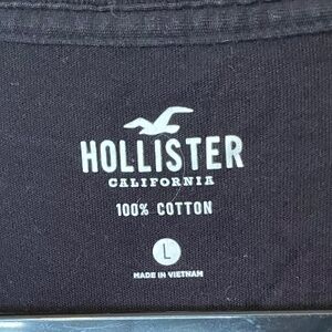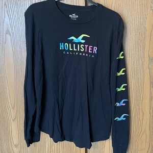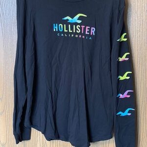 HOLLISTER MENS LONG SLEEVE BLACK SHIRT SIZE L HOLOGRAPHIC SEAGULL LOGOS