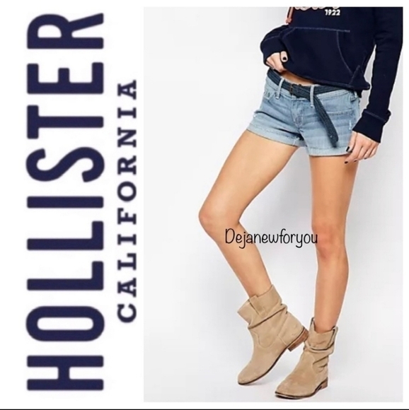 HOLLISTER Micro LOW RISE LIGHT WASH JEAN Cuffed SHORTS Button Front Closure 28