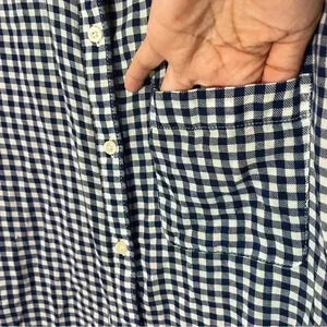 In good condition. Small white and blue gingham. Size small. Lightweight. 100% cotton.