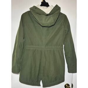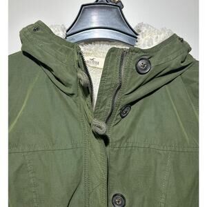 HOLLISTER Olive Green All-Weather Sherpa-Lined Parka Jacket Hooded Womens M