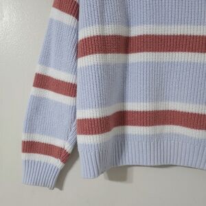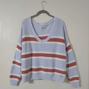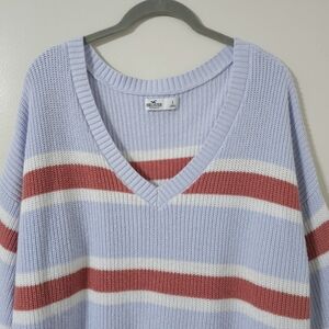HOLLISTER Preppy Oversized Chunky Knit Striped V-Neck Pullover Sweater, Size L
