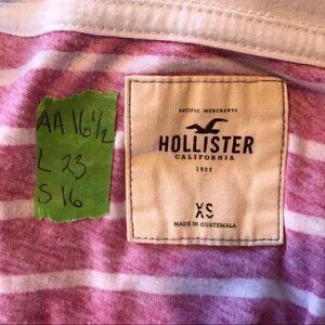 HOLLISTER Red/ White Striped 3/4 Sleeve T-Shirt XS. GUC. This shirt was purchased with a manufactured vintage look and feel (slight pilling). Cute chest pocket adorn on left side. Very light weight and perfect for layering in comfort. Measurements are approx (taken flat) and shown in the last photo. Use zoom to see intricate detail of the shirt. Please ask questions prior to purchase. Your satisfaction is very important to me.