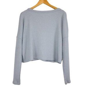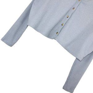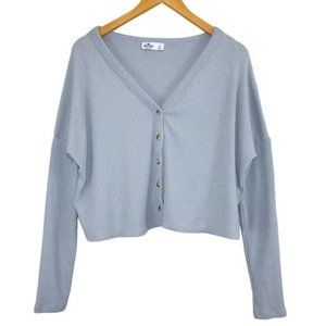 HOLLISTER Ribbed Knit Button Front Semi Cropped Slouchy Cardigan Gray Small