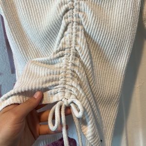 White runch long sleeve shirt. Runch can be adjusted to higher or lower.