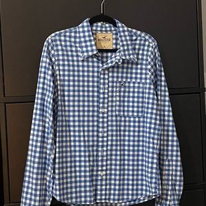 HOLLISTER MEN’S LONG SLEAVE SHIRT BUTTON SIZE XL WHITE-BLUE COLOR