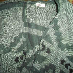 You are purchasing A Women's top. XS/S Hollister shrug. Aztec/Tribal Print. Different Gray colors. Open Front & Fringe. Brand name Fashions. Previously owned, in good condition!
